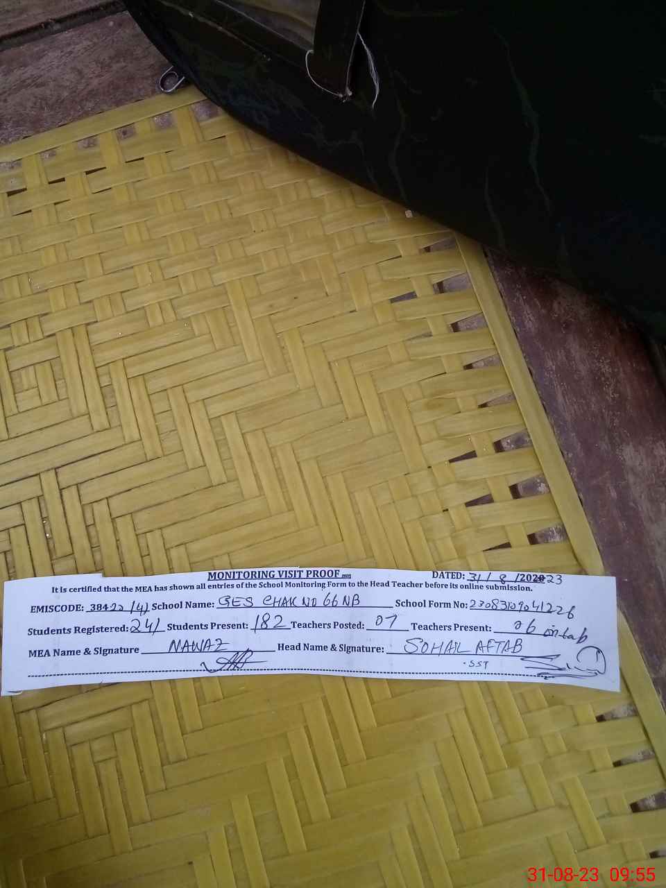 | Attendance Register | Head Teacher | MEA with School | Visit Proof |