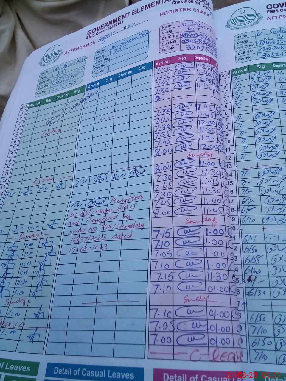| Name: SO**** AF**** Designation: (School Headmaster's/Headmistress's) SST (SCIENCE) Phone/Cell Number: 03**** |