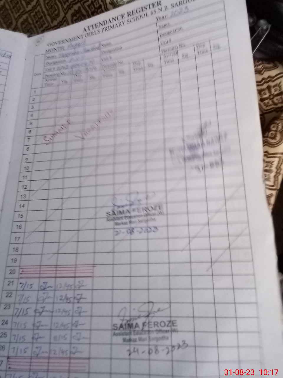 | Name: IF**** PA**** Designation: (School Headmaster's/Headmistress's) PST Phone/Cell Number: 03**** |