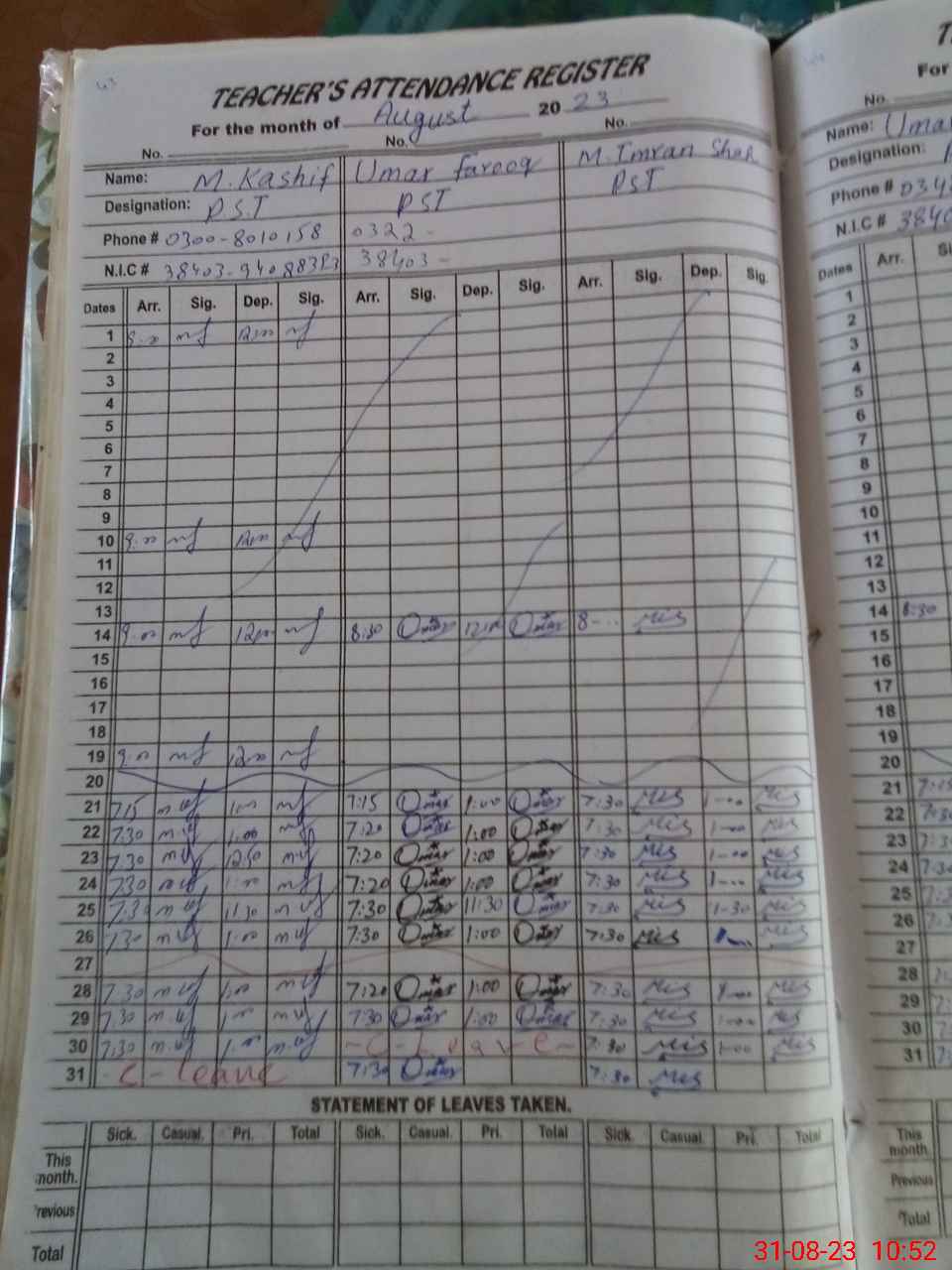 | Name: MU**** KA**** Designation: (School Headmaster's/Headmistress's) PST Phone/Cell Number: 03**** |