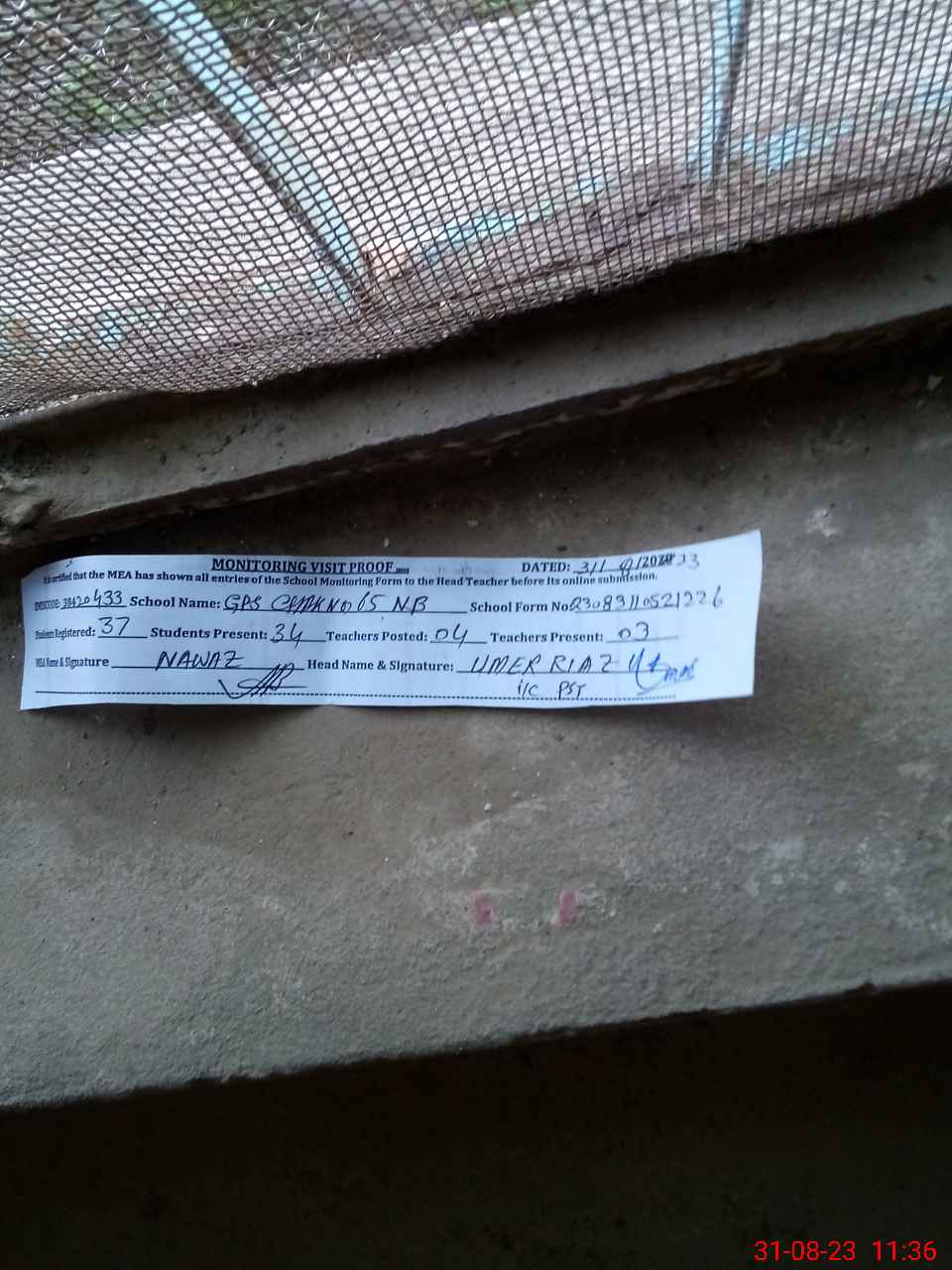 | Attendance Register | Head Teacher | MEA with School | Visit Proof |