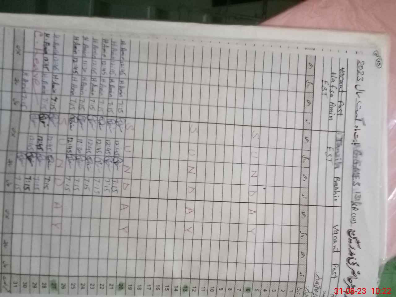 | CNIC | Full Name | Designation | R/C | Absence During Last Calender Month |