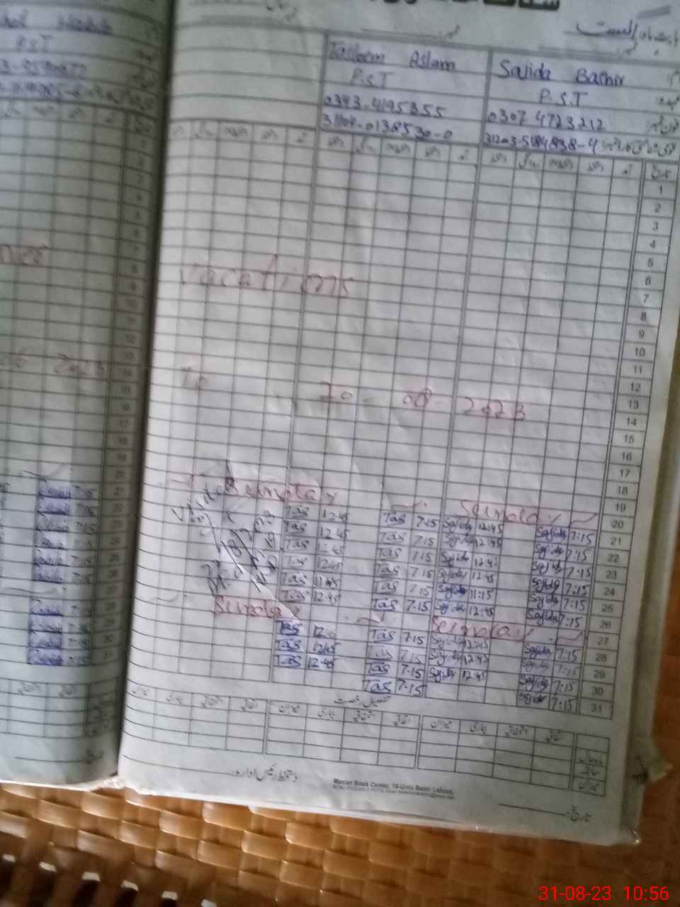 | Leave | Duty | Absent | Maternity | Medical | Ex- Pak |