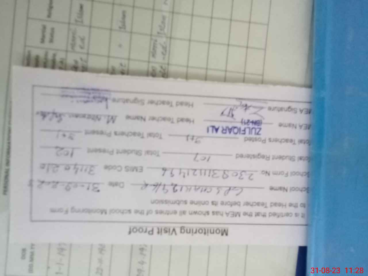 | Attendance Register | Head Teacher | MEA with School | Visit Proof |