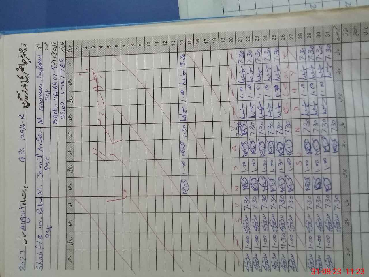 | CNIC | Full Name | Designation | R/C | Absence During Last Calender Month |