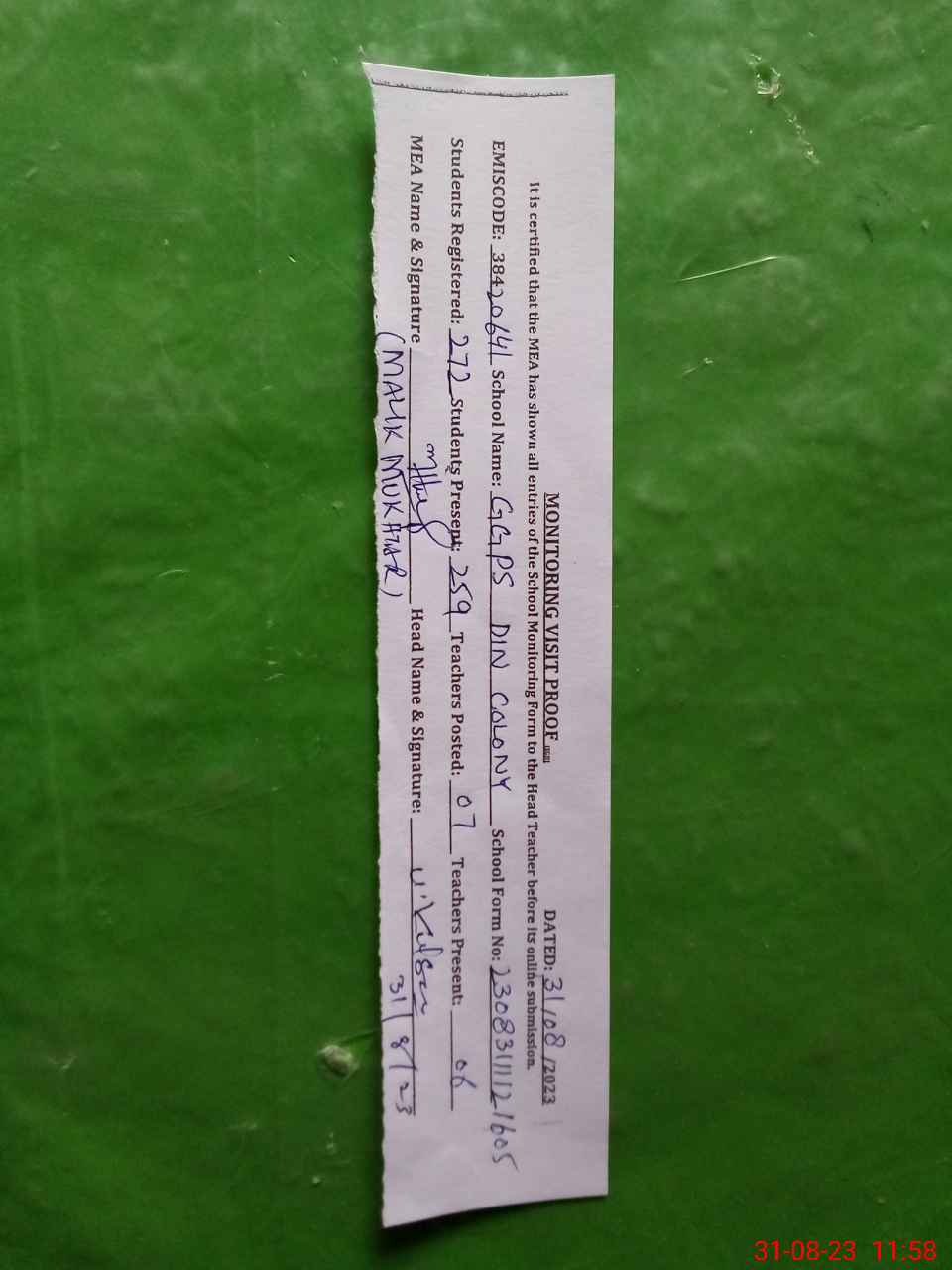 | EMIS Code: 38420641 | Name of School: GGPS DIN COLONY | |||