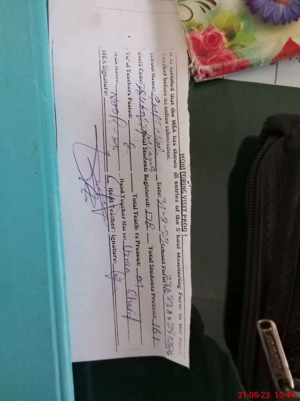 | Attendance Register | Head Teacher | MEA with School | Visit Proof |