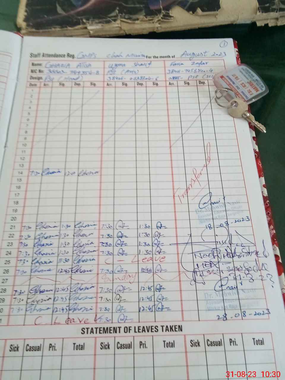 | CNIC | Full Name | Designation | R/C | Absence During Last Calender Month |