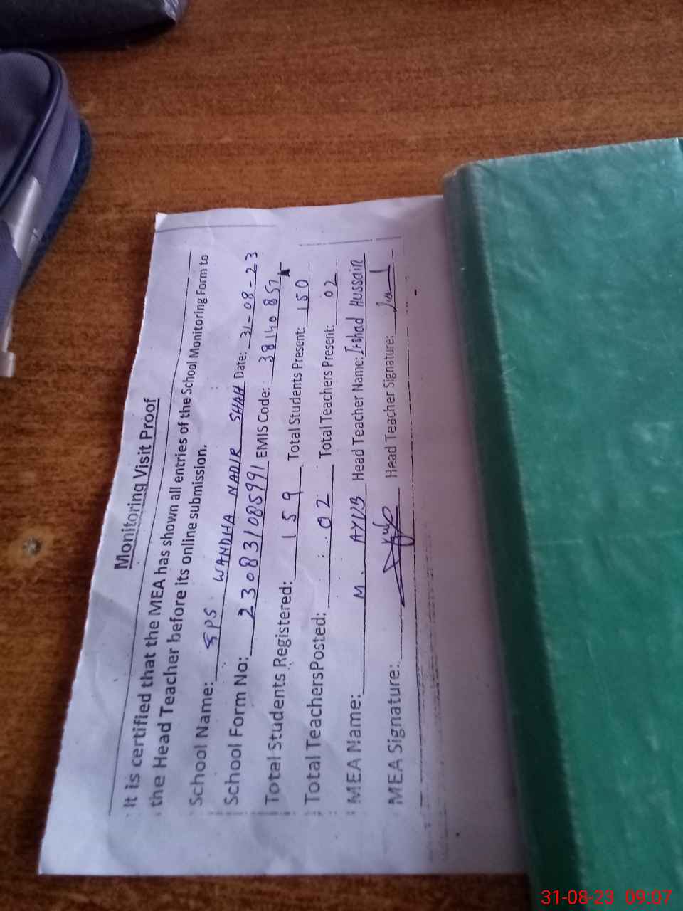 | EMIS Code: 38140857 | Name of School: GPS WANDHA NADIR SHAH | |||