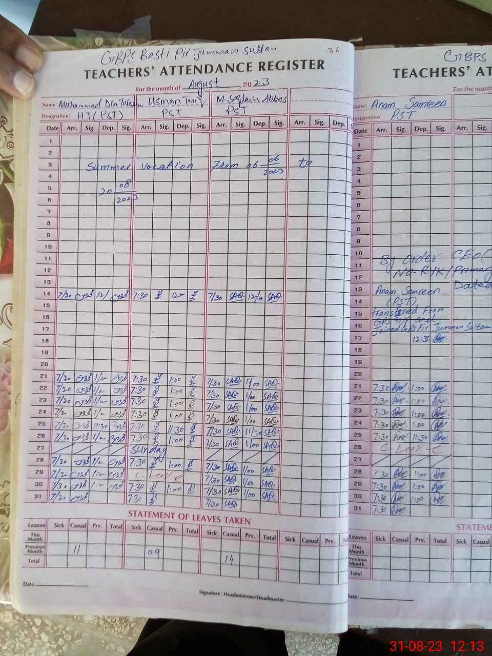 | Name: Mu**** Di**** Ta**** Designation: (School Headmaster's/Headmistress's) PST Phone/Cell Number: 03**** |
