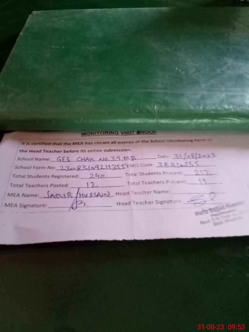 | EMIS Code: 38210255 | Name of School: GES CHAK NO 39 MB | |||