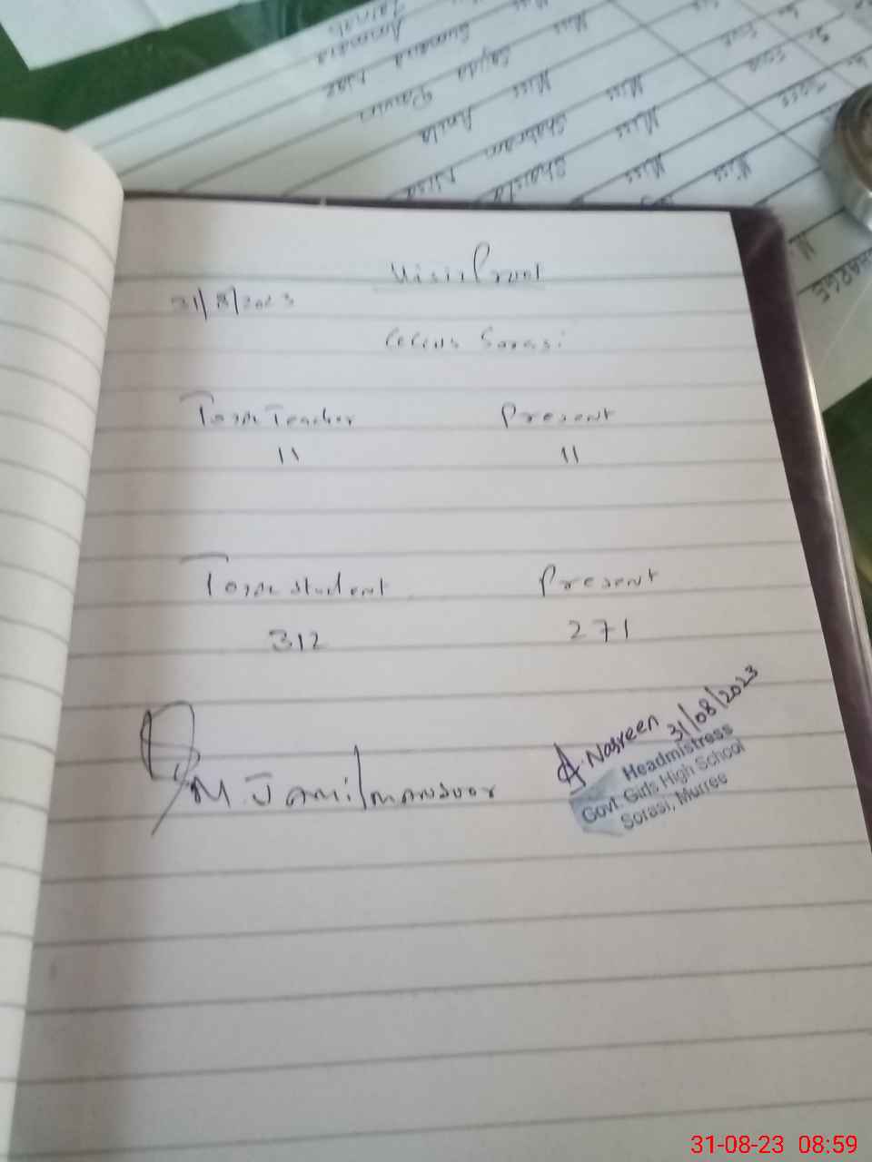 | Attendance Register | Head Teacher | MEA with School | Visit Proof |