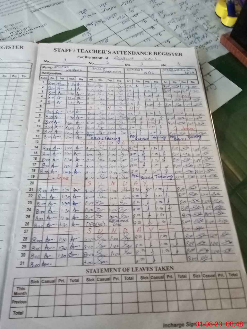 | Monitoring Date: 31-08-2023 | Start Time: 31-08-2023 08:31 AM | End Time: 31-08-2023 08:59 AM | Name of MEA: Re**** Ja**** ma**** | |
