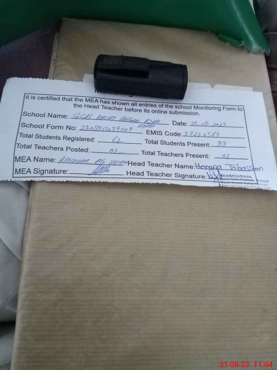 | EMIS Code: 39220569 | Name of School: GGPS KALAY PATHAN AZAFI ABADI | |||