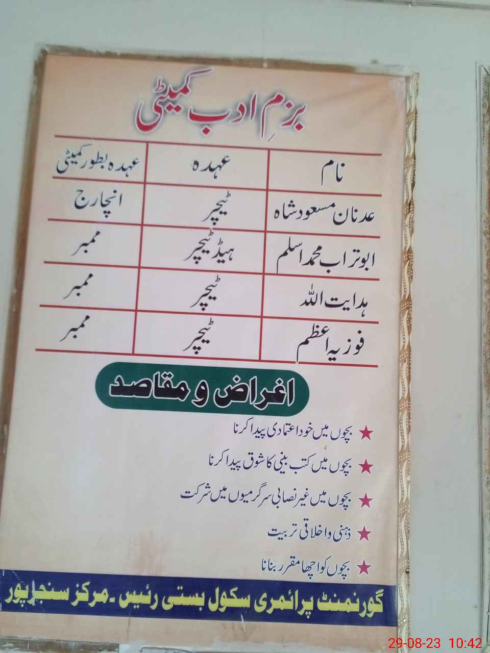| District: RAHIMYAR KHAN | Tehsil: SADIQABAD | Markaz: SANJAR PUR - MALE | Level: Primary | |