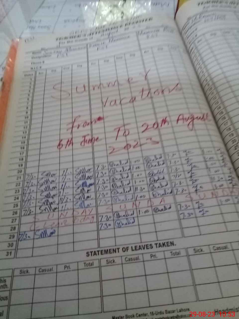| CNIC | Full Name | Designation | R/C | Absence During Last Calender Month |