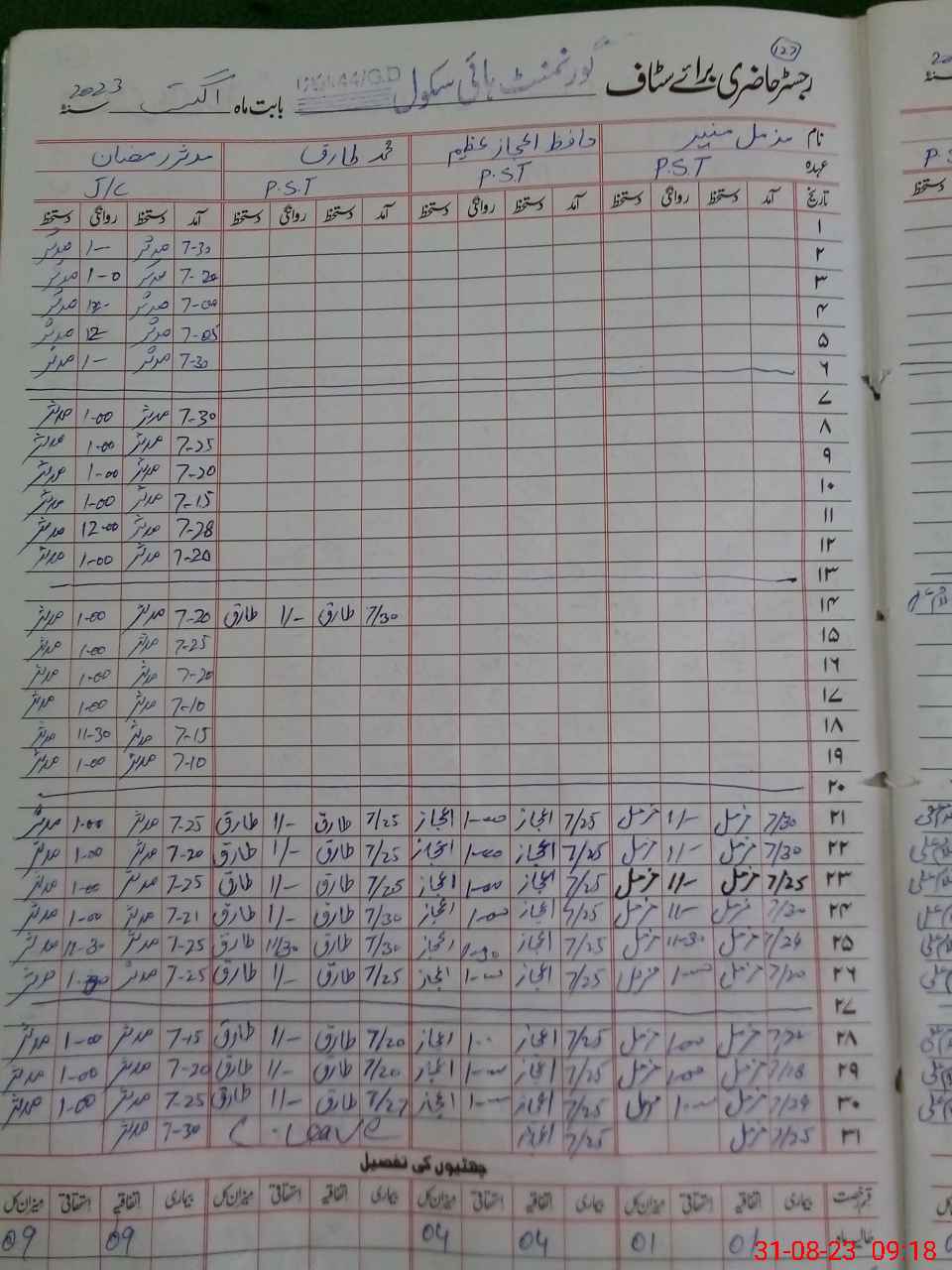 | CNIC | Full Name | Designation | R/C | Absence During Last Calender Month |