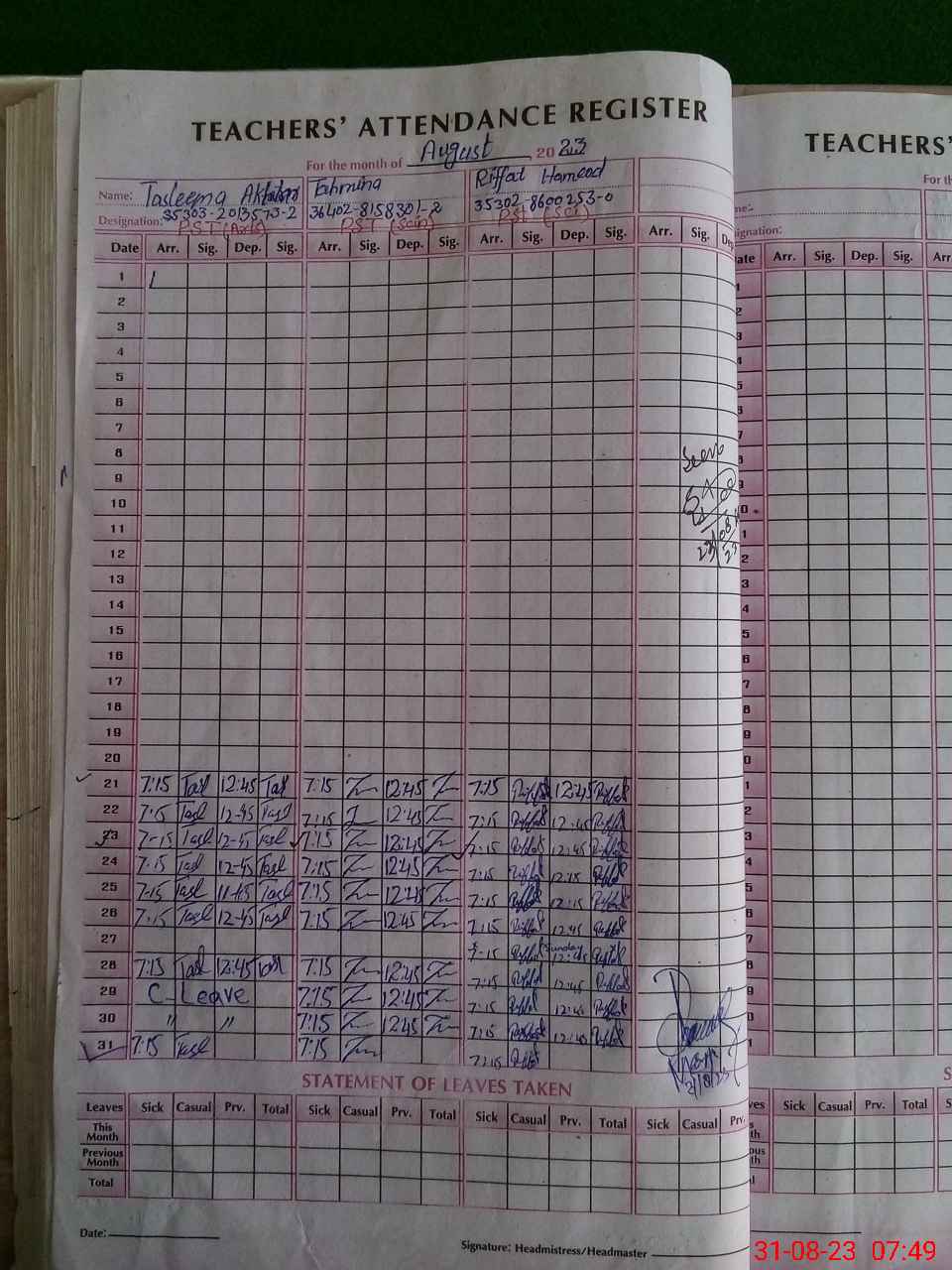 | Name: Ta**** Designation: (School Headmaster's/Headmistress's) PST Phone/Cell Number: 03**** |