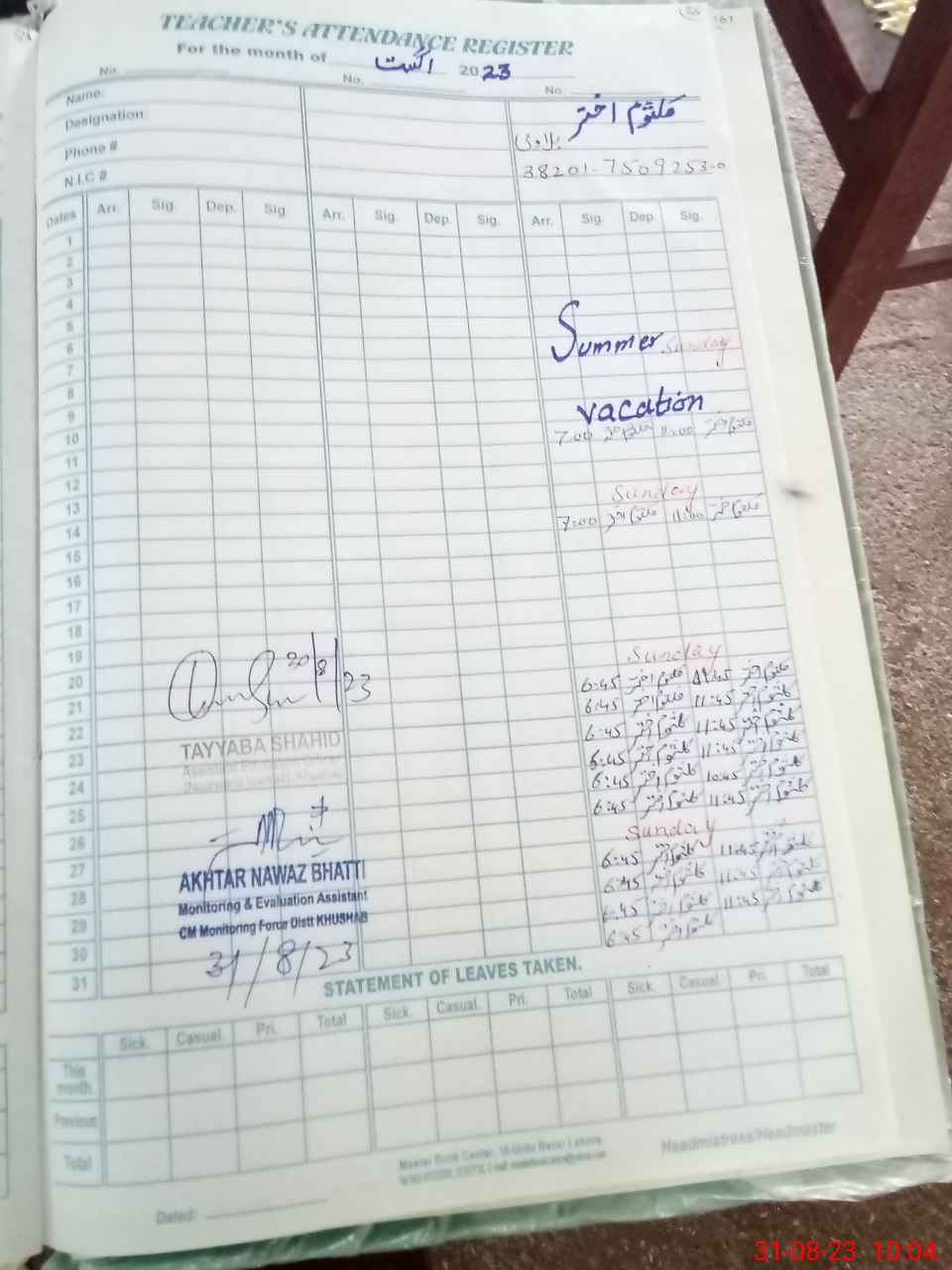| Name: Sh**** Ak**** Designation: (School Headmaster's/Headmistress's) PST Phone/Cell Number: 03**** |