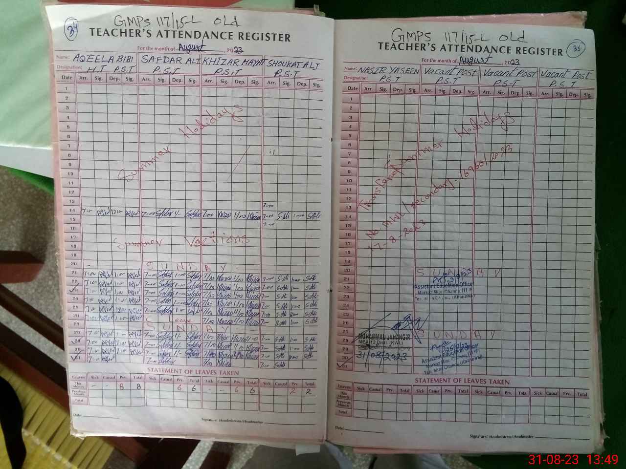 | Remarks (Use Separate Page if Required): THIS SCHOOL IS INSAF AFTERNOON SCHOOL FTF RECORDS IS NOT MAINTAINED TWO TOILETS FOUND BLOCKED AND NON FUNCTIONAL IN BOYS PORTION RANDOM CLASS TWO IS NOW IN CLASS FOUR NASIR YASEEN PST AND SUMRA ALTAF PST ARE TRANSFERRED FROM THIS SCHOOL BUT THEIR NAMES ARE STILL EXIST IN MEA TAB LIST STUDENTS ATTENDANCE REGISTERS ARE NOT MAINTAINED | |||||