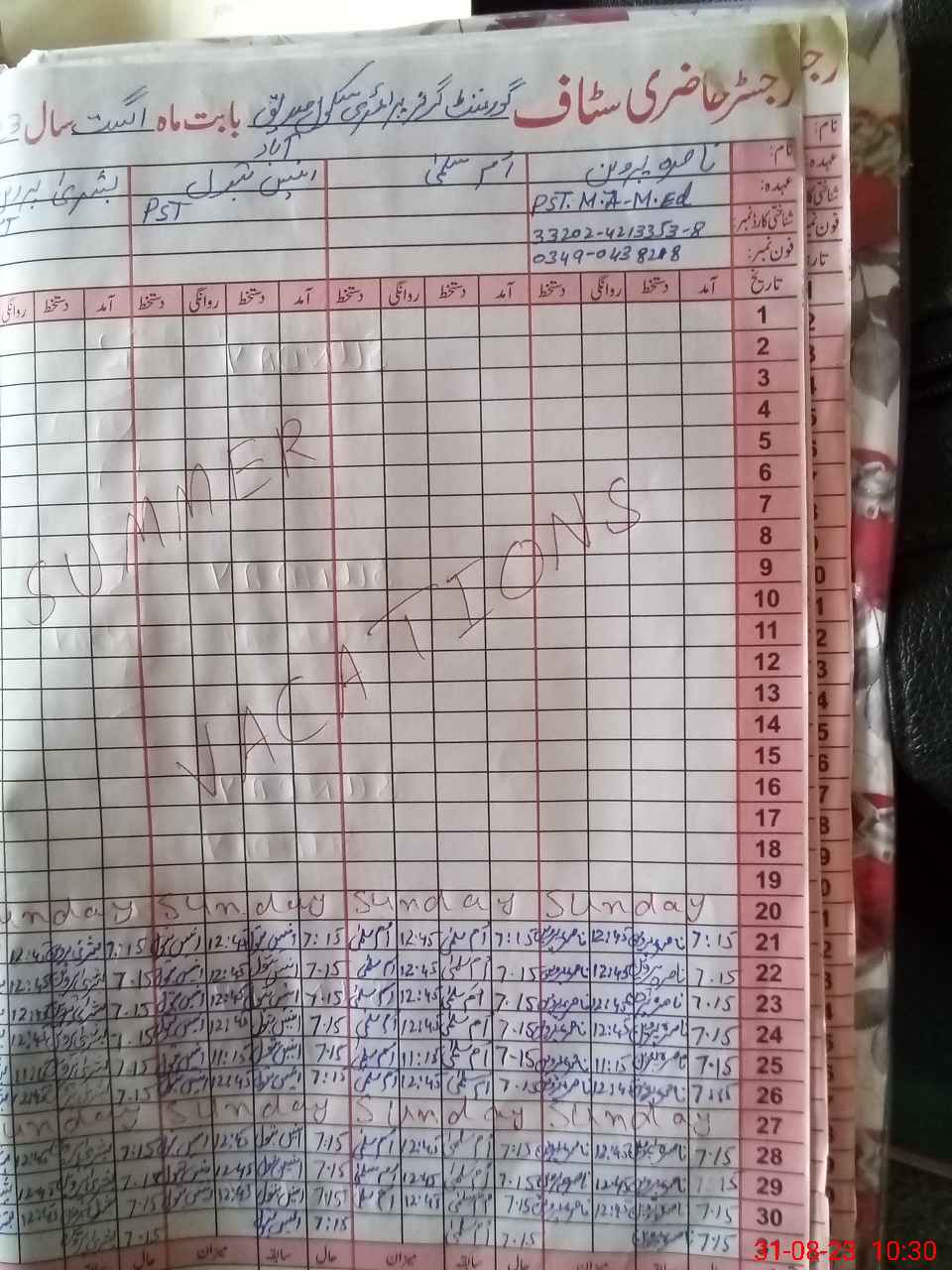 | Name: Na**** Pa**** Designation: (School Headmaster's/Headmistress's) PST/PTC/JV Phone/Cell Number: 03**** |