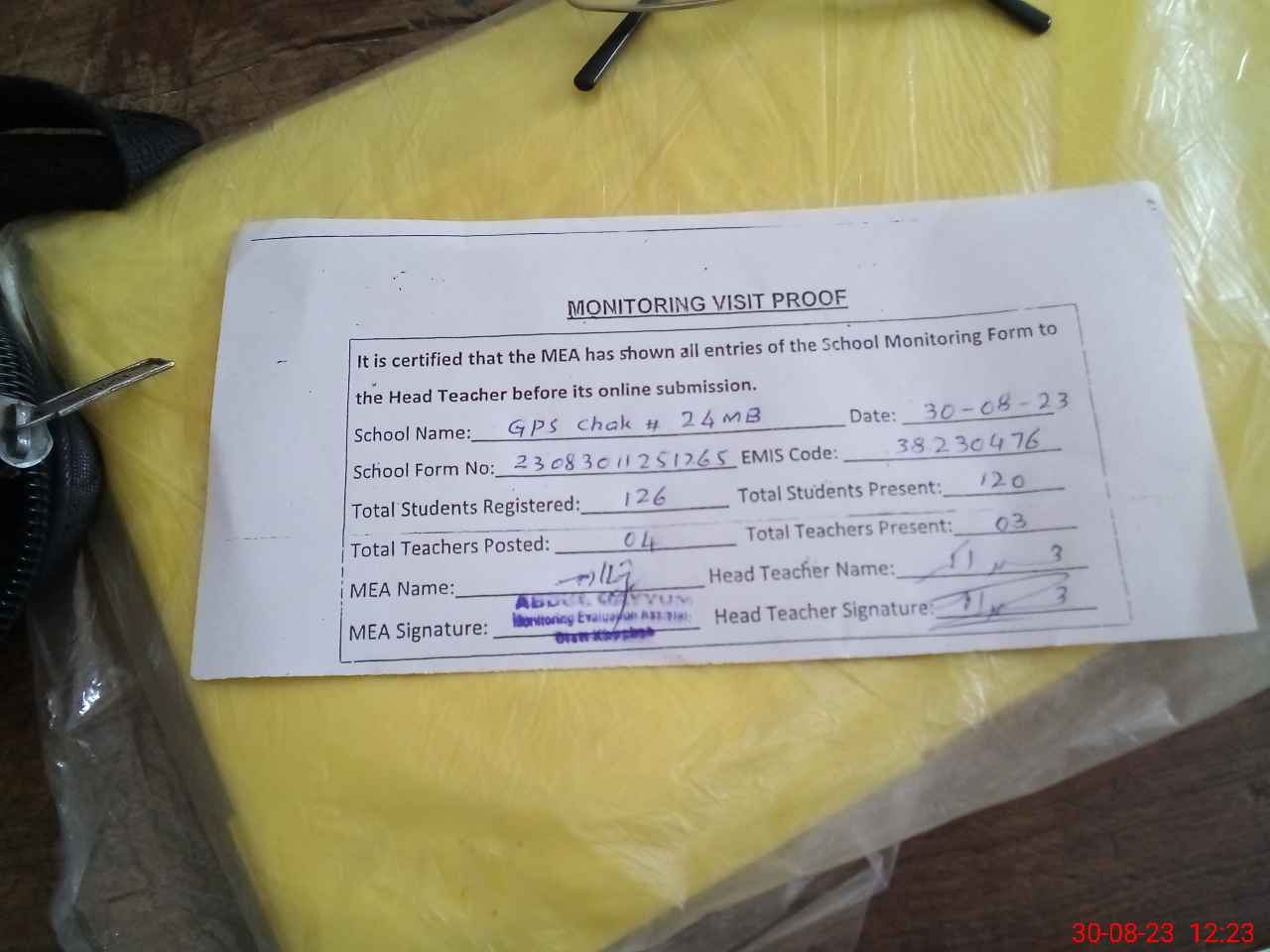 | EMIS Code: 38230476 | Name of School: GPS CHAK NO. 24 MB | |||