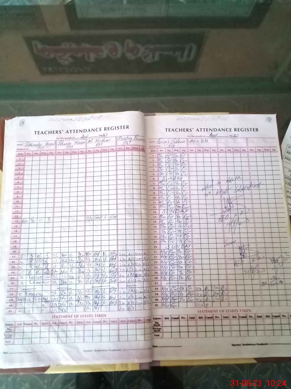 | Name: AM**** AL**** Designation: (School Headmaster's/Headmistress's) PST Phone/Cell Number: 03**** |