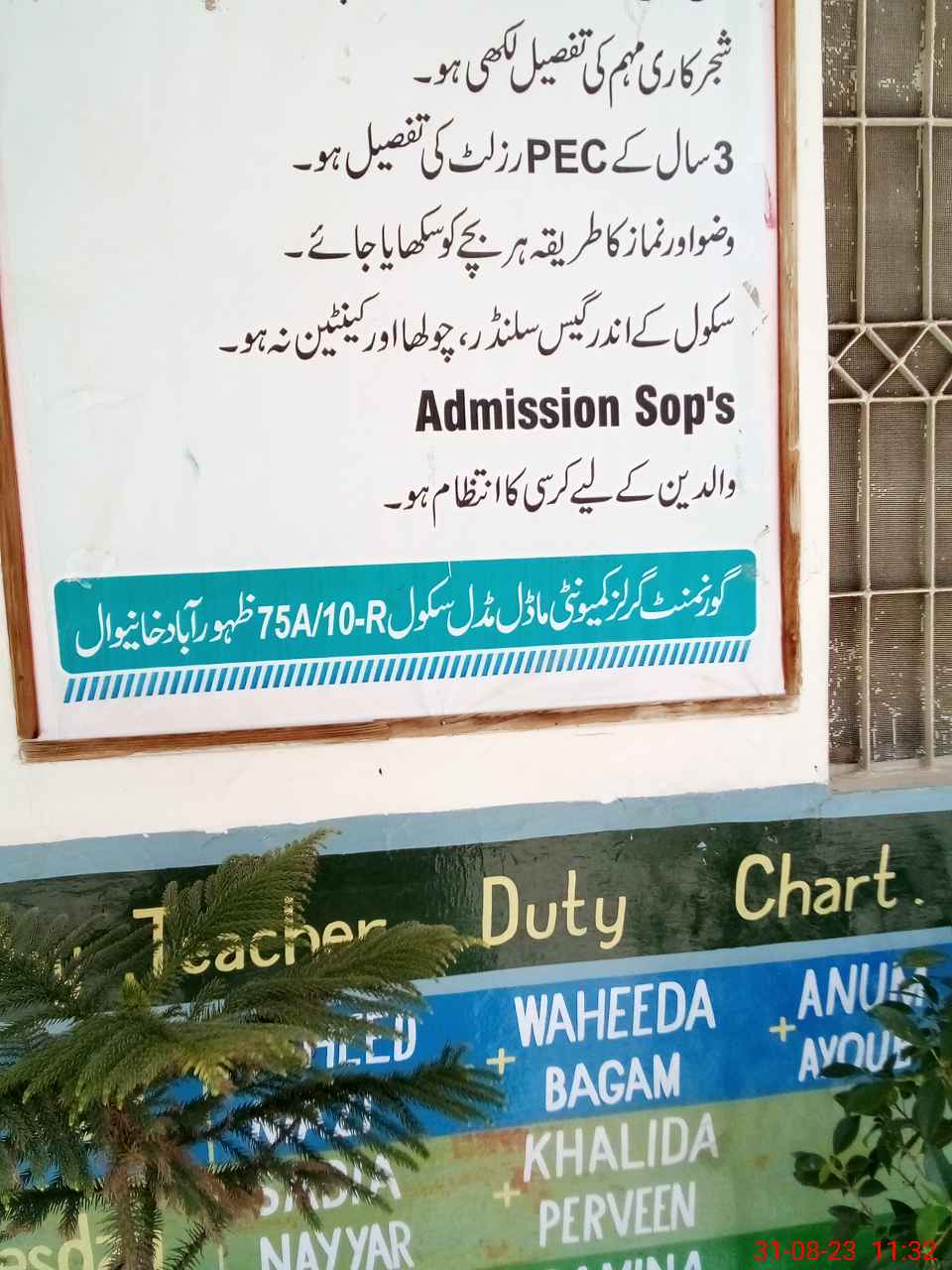 | EMIS Code: 36420385 | Name of School: GGHS CMS 75-A/10-R ZAHOOR ABAD KHANEWAL | |||
