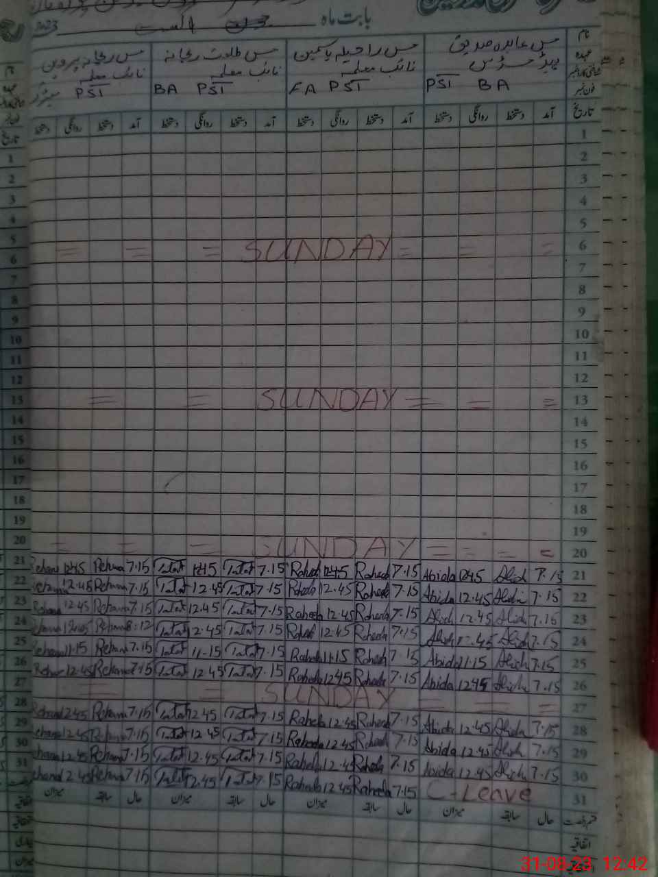 | 35**** | Ab**** Sa**** | PST | Regular | 0 | 0 | 0 | 0 | 0 | 0 | 0 | 0 | 0 | Casual |