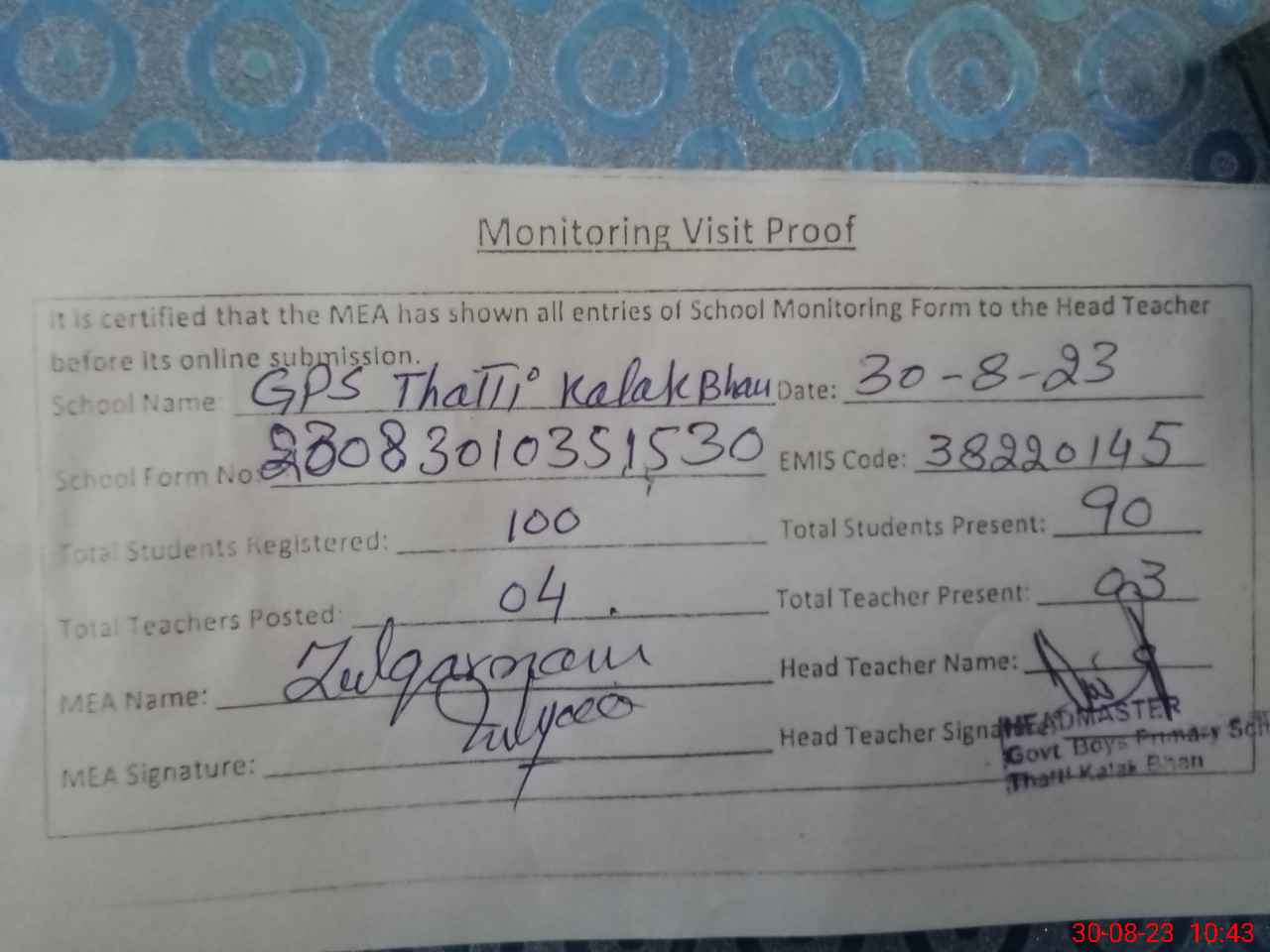 | EMIS Code: 38220145 | Name of School: GPS THATTI KALAK BHAN | |||
