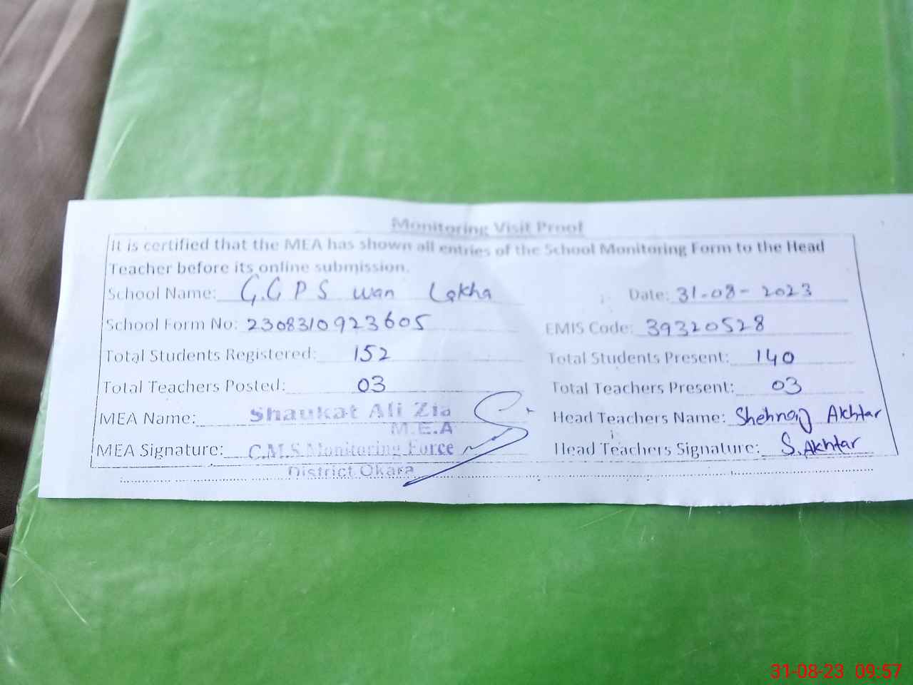 | EMIS Code: 39320528 | Name of School: GGPS WAN LAKHA | |||