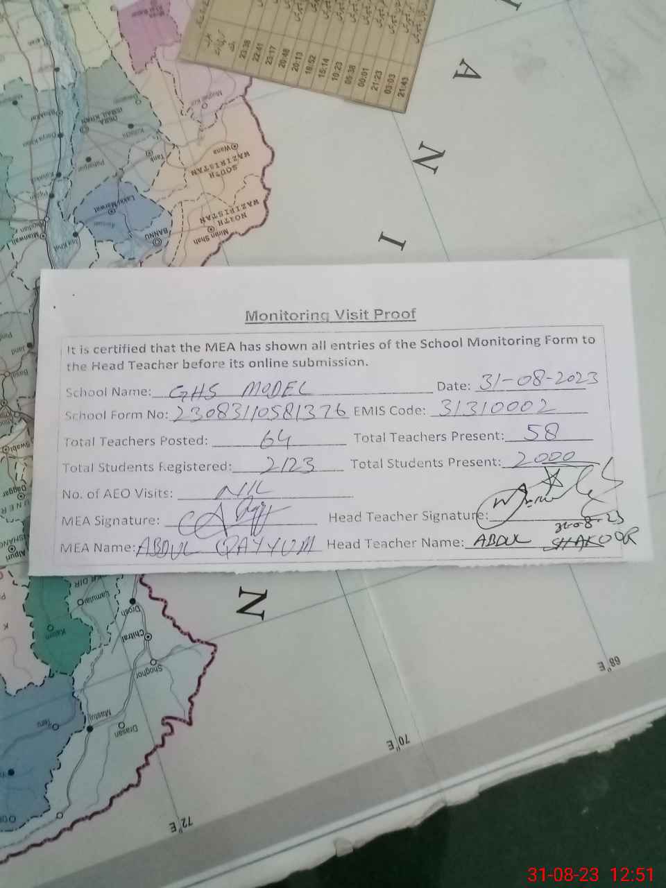 | Certified that this School was Inspected by the Undersigned MEA/DMO Today and the Information Stated Above is as Per Record. | |||||