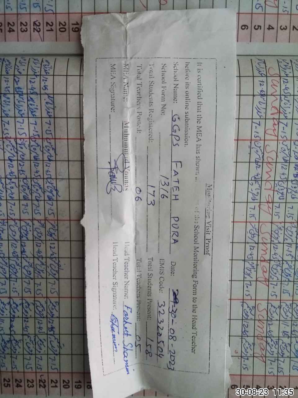 | EMIS Code: 32320504 | Name of School: GGPS FATEH PURA | |||