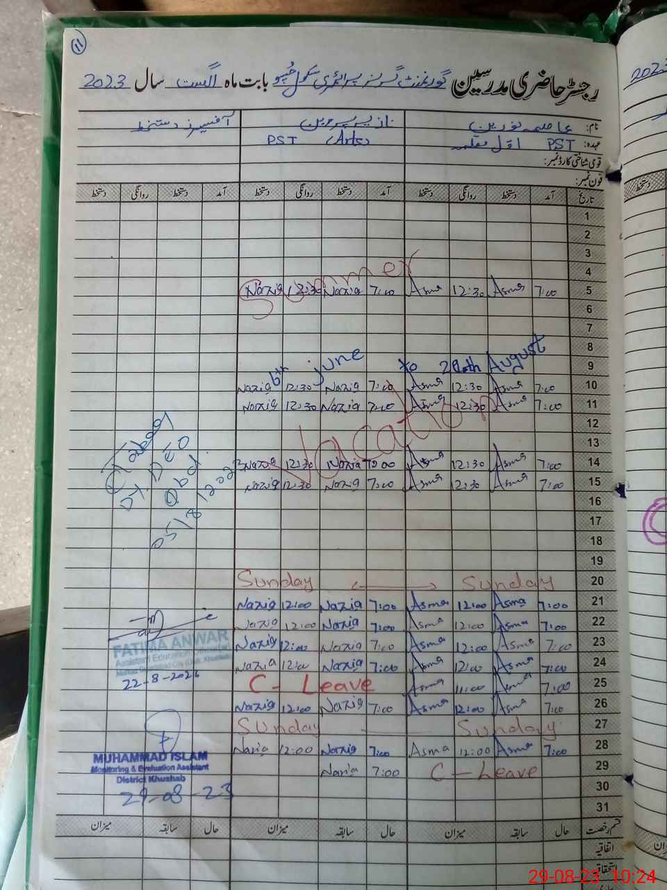 | Name: AS**** NO**** Designation: (School Headmaster's/Headmistress's) PST Phone/Cell Number: 03**** |