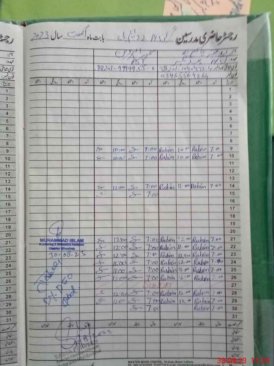 | Name: RU**** YA**** Designation: (School Headmaster's/Headmistress's) PST Phone/Cell Number: 03**** |
