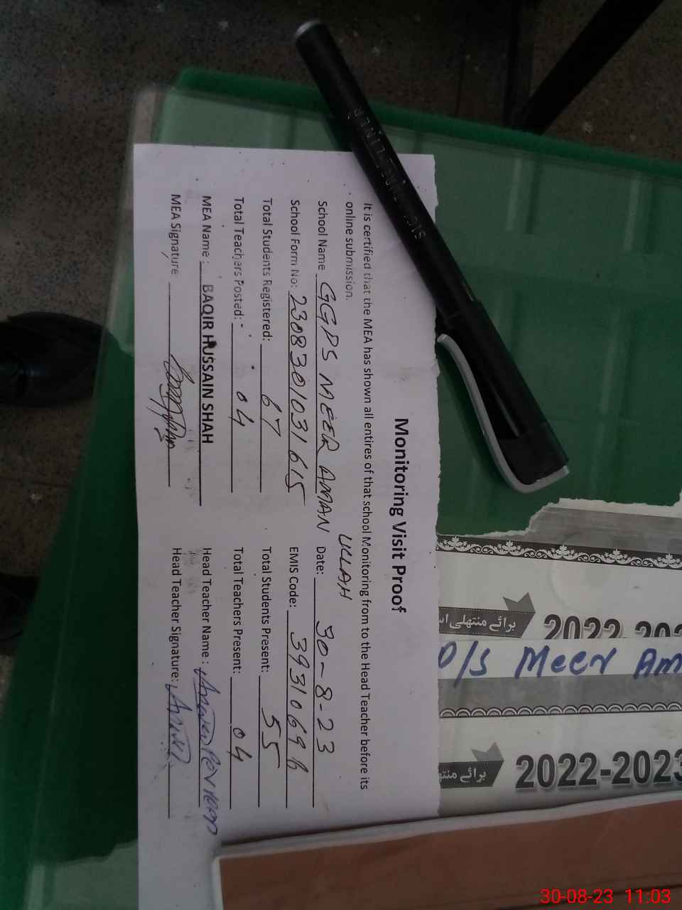 | EMIS Code: 39310696 | Name of School: GGPS MEER AMAN ULLAH | |||