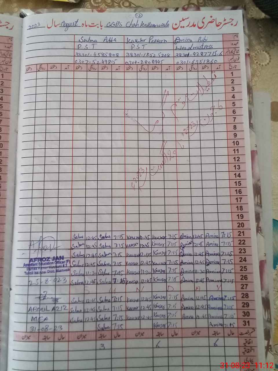 | Name: Am**** Bi**** Designation: (School Headmaster's/Headmistress's) PST Phone/Cell Number: 03**** |