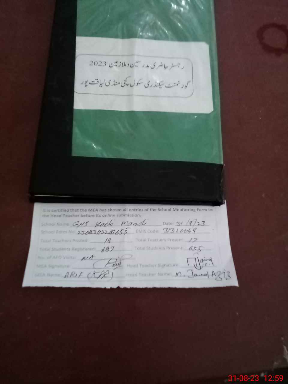 | Attendance Register | Head Teacher | MEA with School | Visit Proof |