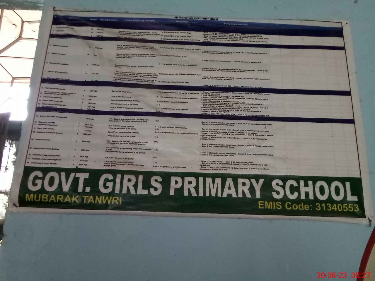| EMIS Code: 31340553 | Name of School: GGPS MUBARAK TANWERI | |||