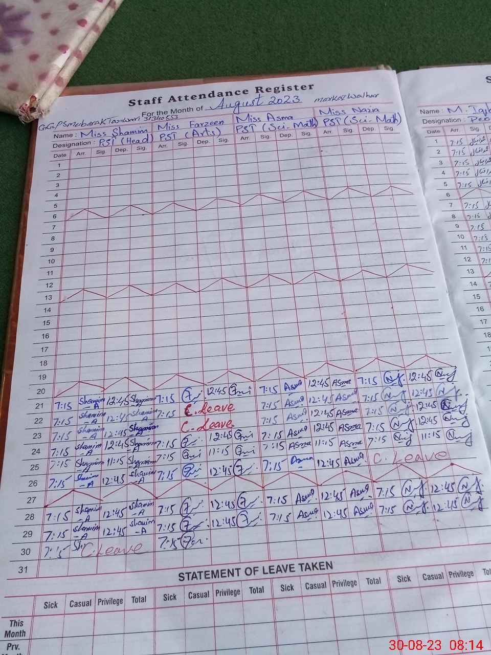 | 31**** | Sh**** Ak**** | PST | Regular | 0 | 0 | 0 | 0 | 0 | 0 | 0 | 0 | 0 | Absent (Un-Authorized) |