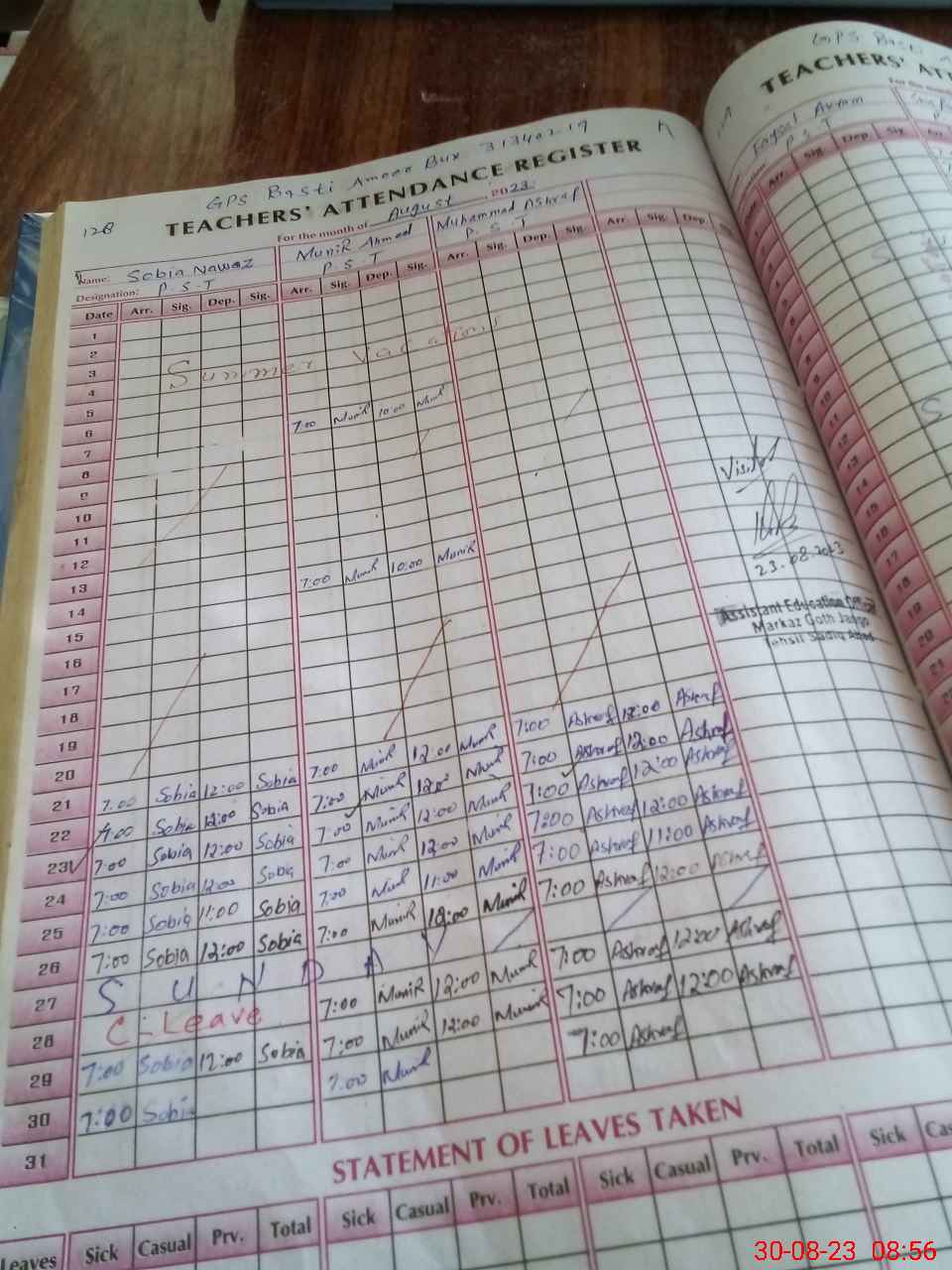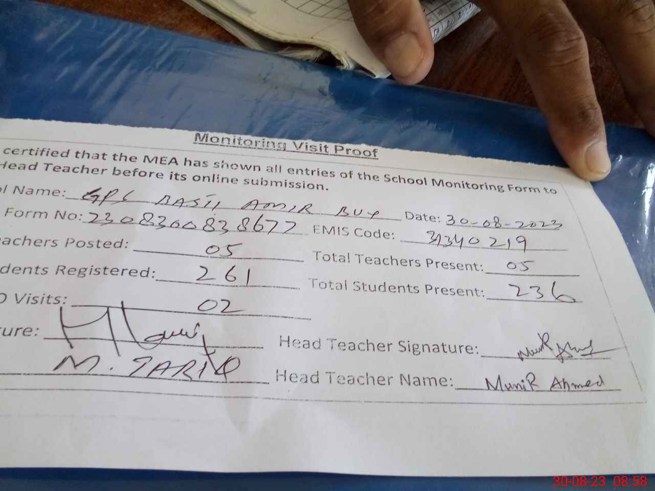 | Attendance Register | Head Teacher | MEA with School | Visit Proof |