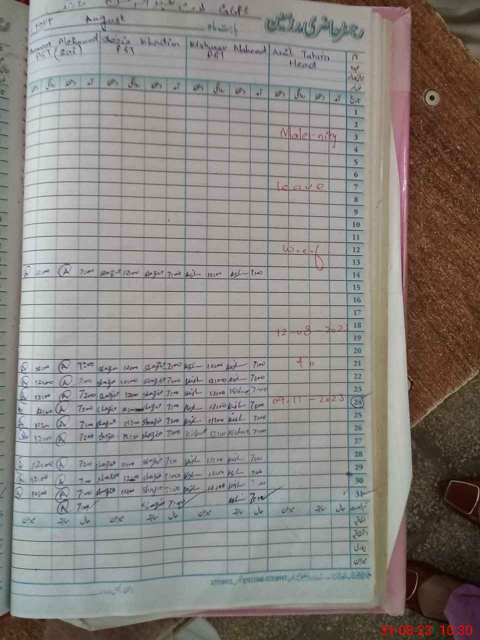 | 35**** | As**** Ta**** | Contract | 0 | 0 | 0 | 0 | 0 | 0 | 0 | 0 | 0 | Maternity | |