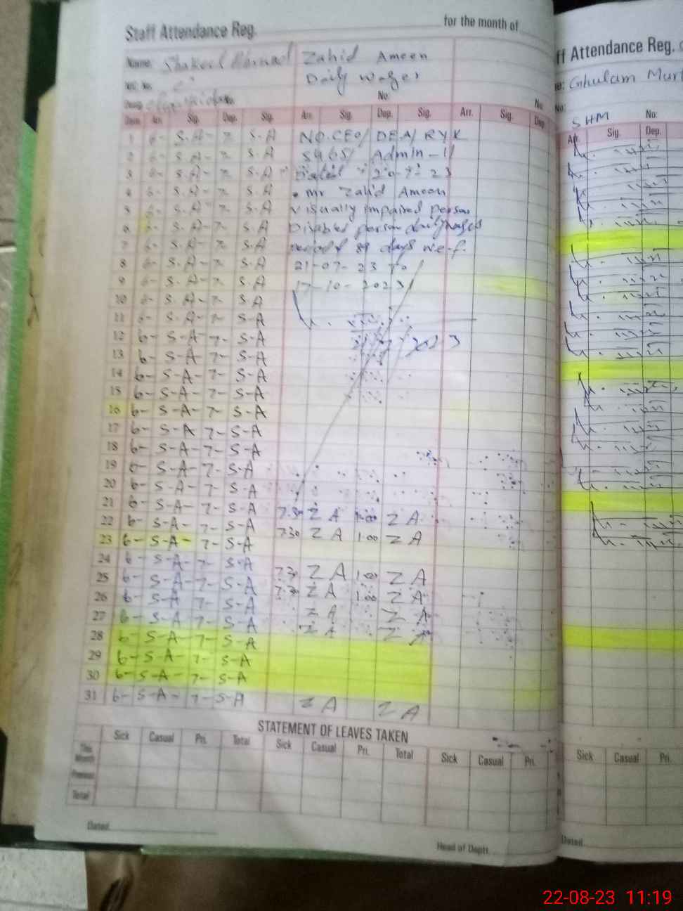 | 31**** | Gh**** Ya**** | PST | Regular | 0 | 0 | 0 | 0 | 0 | 0 | 0 | 0 | 0 | Casual |