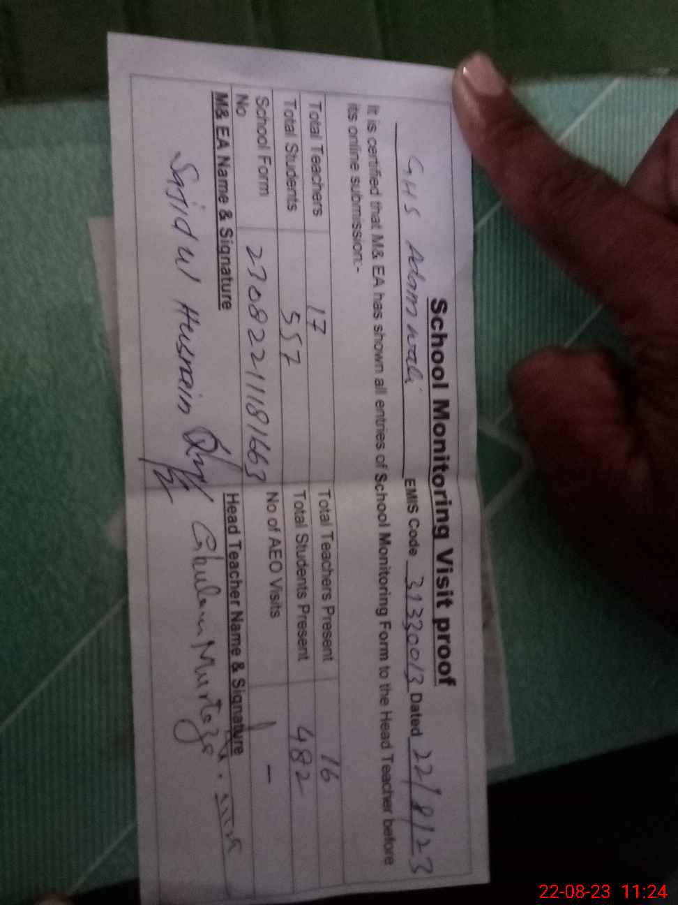 | Name: GH**** FA**** Designation: (School Headmaster's/Headmistress's) IN CHARGE HEAD MASTER Phone/Cell Number: 03**** |