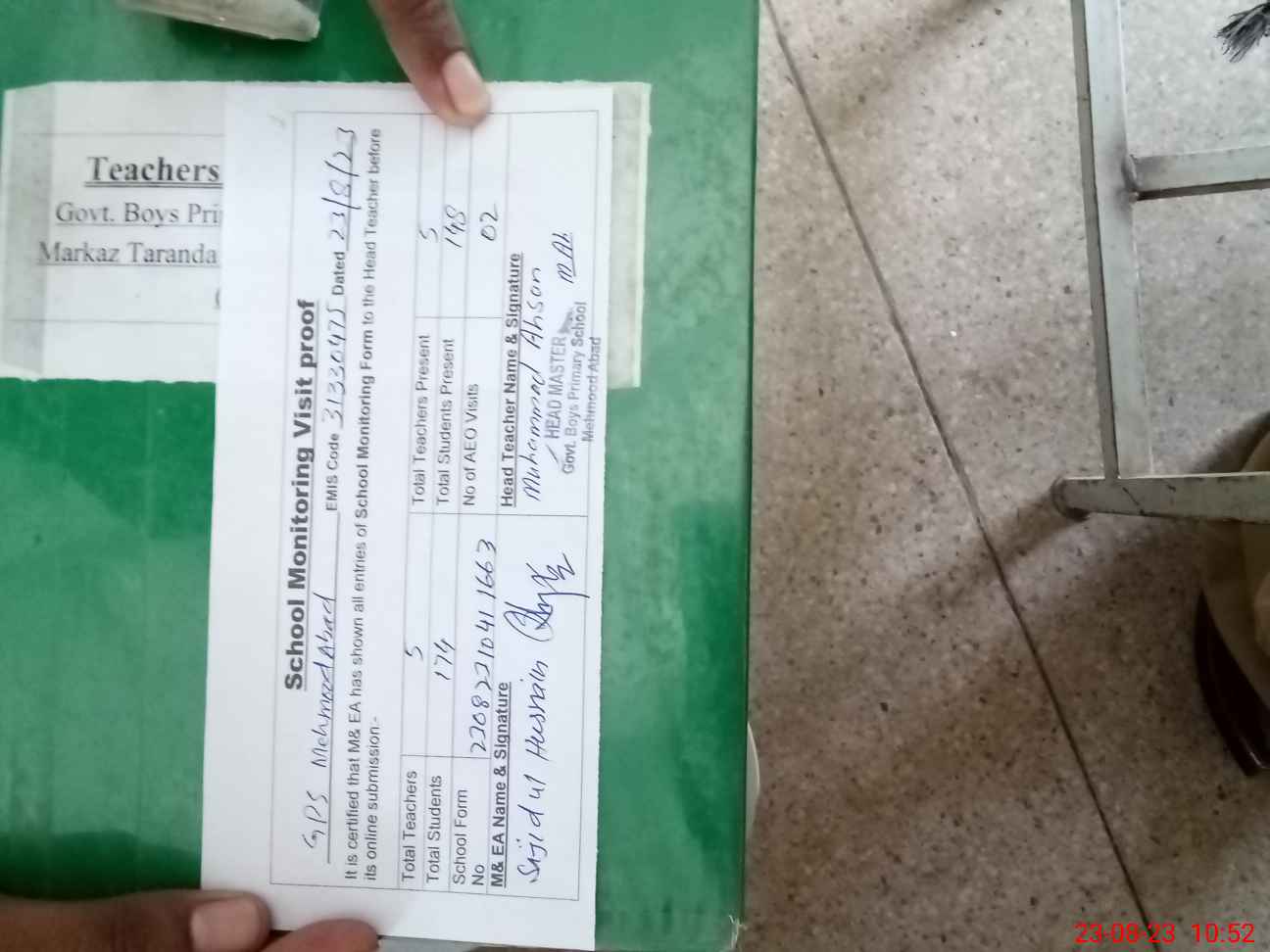 | EMIS Code: 31330475 | Name of School: GPS MAHMOOD ABAD | |||