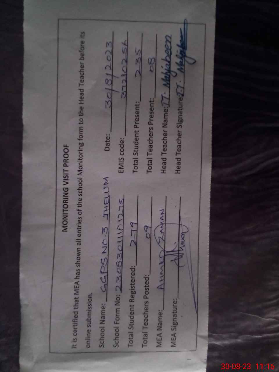 | EMIS Code: 37210256 | Name of School: GGPS NO. 3 JEHLUM | |||