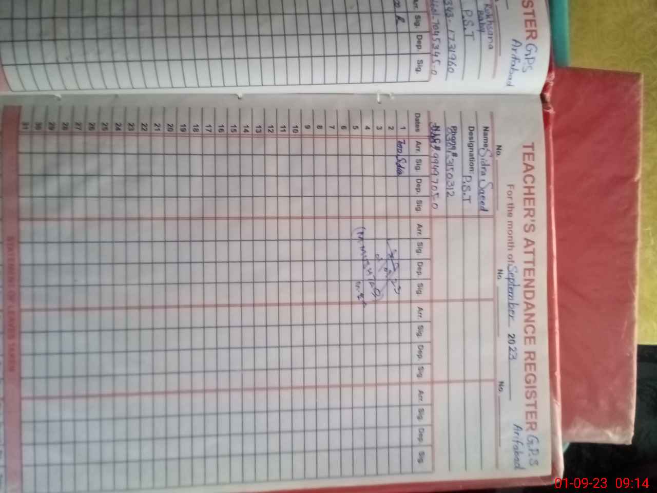 | Name: Ab**** Pa**** Designation: (School Headmaster's/Headmistress's) PST Phone/Cell Number: 03**** |