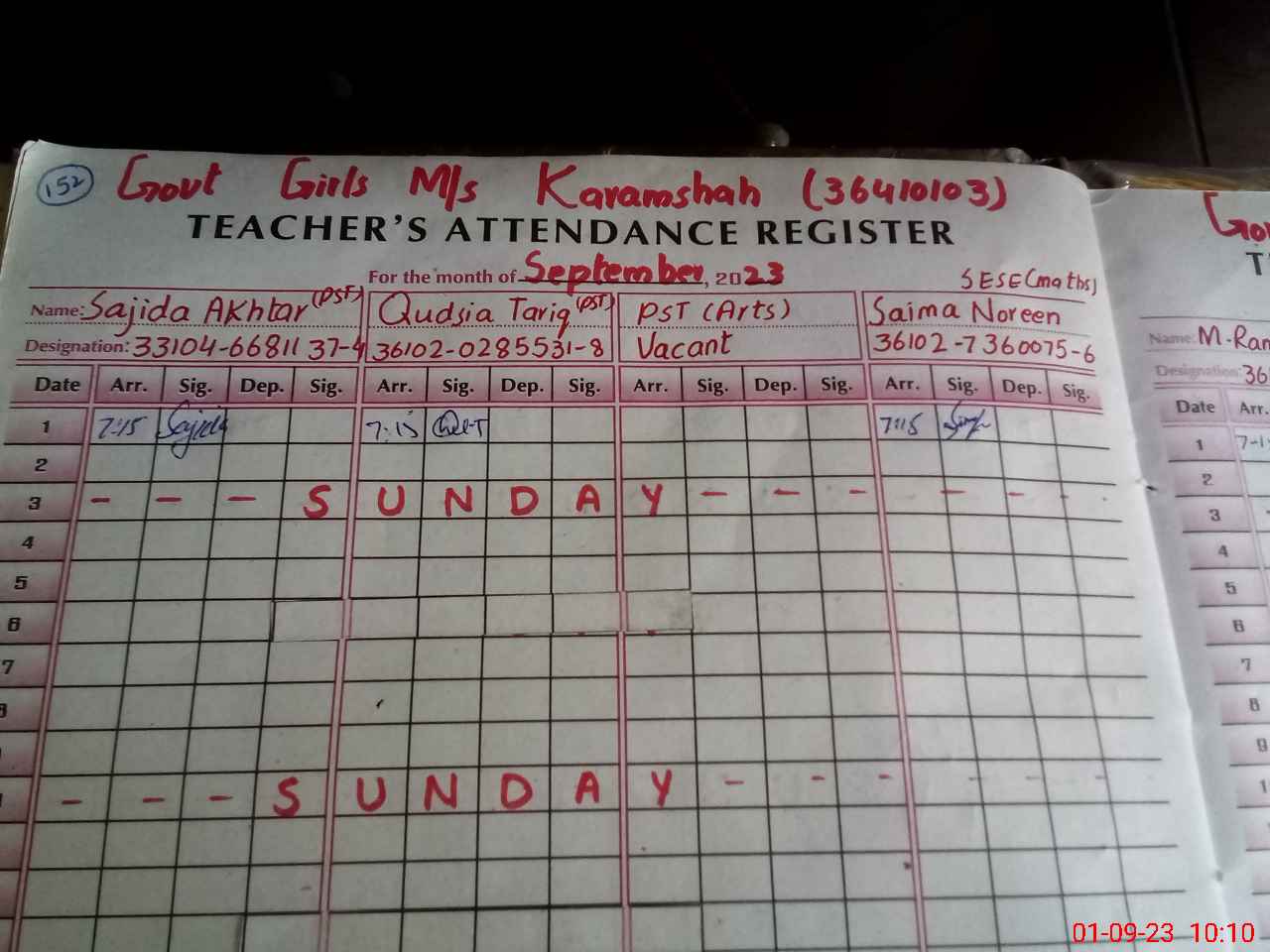 | Remarks (Use Separate Page if Required): Saima Noureen EST Sobia Tayyab EST Both are posted in this school but not in teacher list | |||||