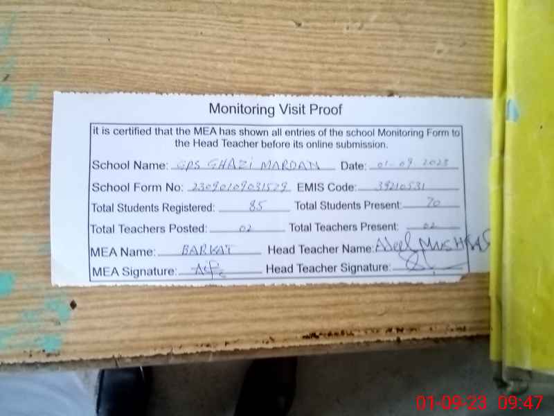 | EMIS Code: 39210531 | Name of School: GPS GHAZI MARDAN P/O CHAK BEDI | |||
