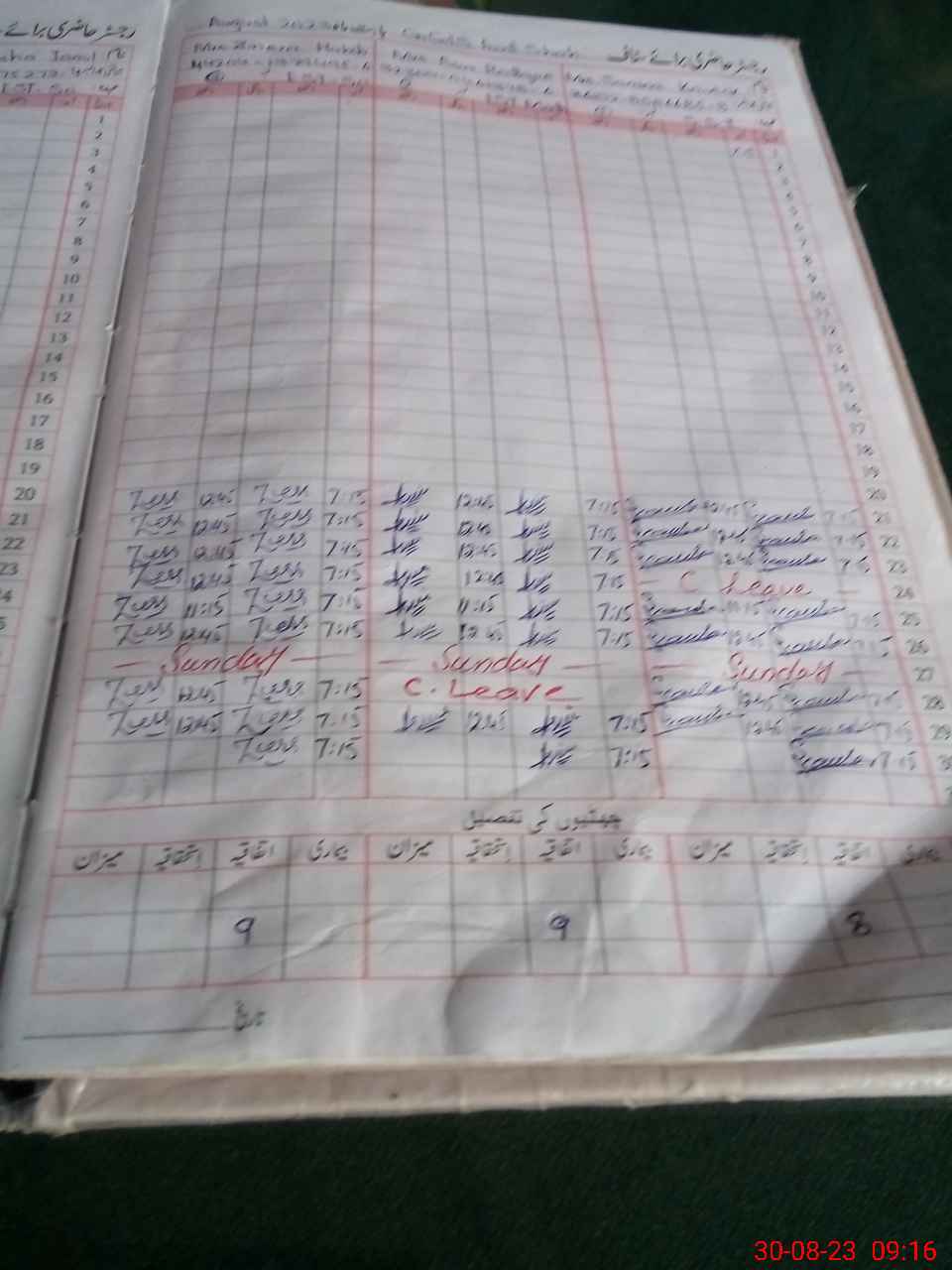 | CNIC | Full Name | Designation | R/C | Absence During Last Calender Month |